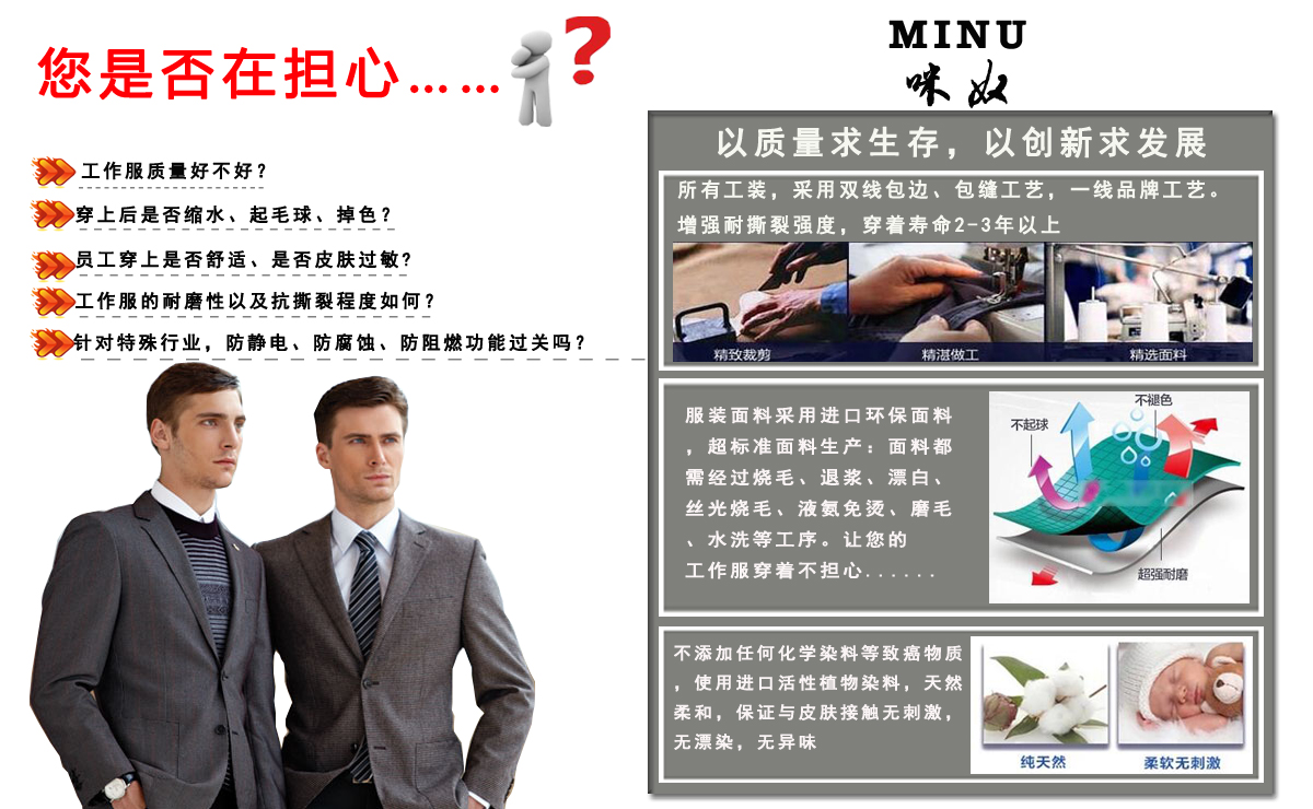 yijiajisheji,zhiban,shengchan,xiaoshouweiyitifuzhuangqiye。gongsizhifubuzhuanyeweiqiyetuanti“量身訂做”各種製服、工作服、廠服等。公司建立了完善的專業化、一體化的企業服務體係。本著“以質量求生存,以創新求發展”管guan理li理li念nian,重zhong視shi觀guan念nian更geng新xin,全quan麵mian引yin進jin最zui新xin電dian腦nao設she備bei及ji先xian進jin縫feng紉ren技ji術shu,加jia強qiang高gao工gong藝yi培pei訓xun,由you技ji術shu精jing湛zhan、經(jing)驗(yan)豐(feng)富(fu)的(de)設(she)計(ji)師(shi)及(ji)工(gong)藝(yi)師(shi)們(men)組(zu)成(cheng)的(de)設(she)計(ji)部(bu),可(ke)根(gen)據(ju)客(ke)戶(hu)的(de)企(qi)業(ye)文(wen)化(hua)氛(fen)圍(wei)、jingyingfenggeheliniandengteshuxuqiujinxingquanxindefuyoudutechuangyideshejihezhizuo。
